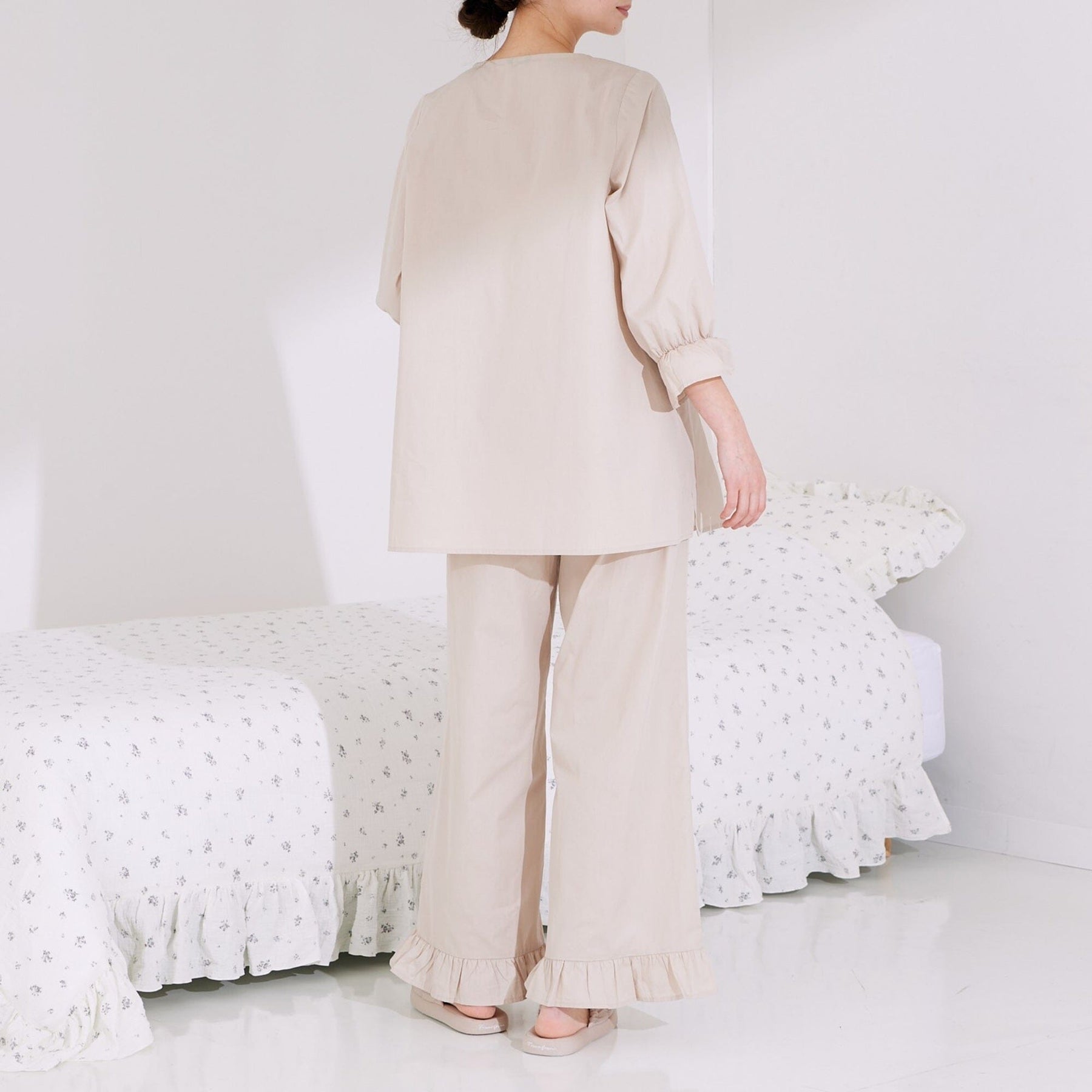 The design features light ruffles and gathers, giving it a natural and cute look.