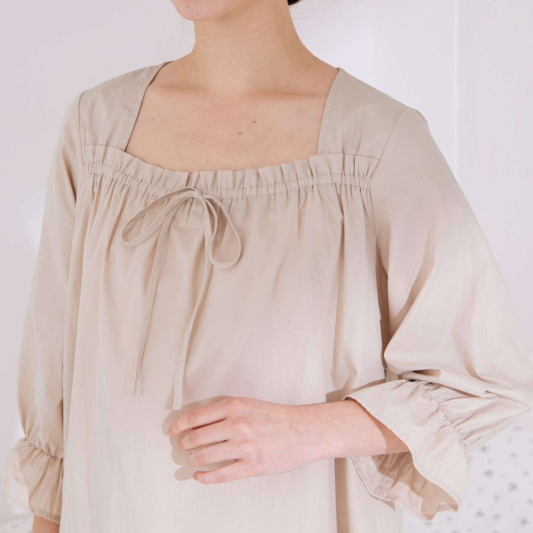 ■When sleeping, be careful not to catch the strings at the chest of your top on anything.