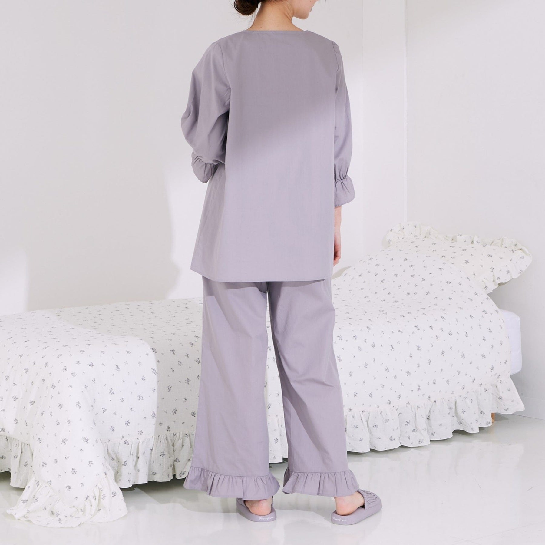 These pajamas are made from soft cotton material that has been processed to be flexible, making them smooth and comfortable against the skin.