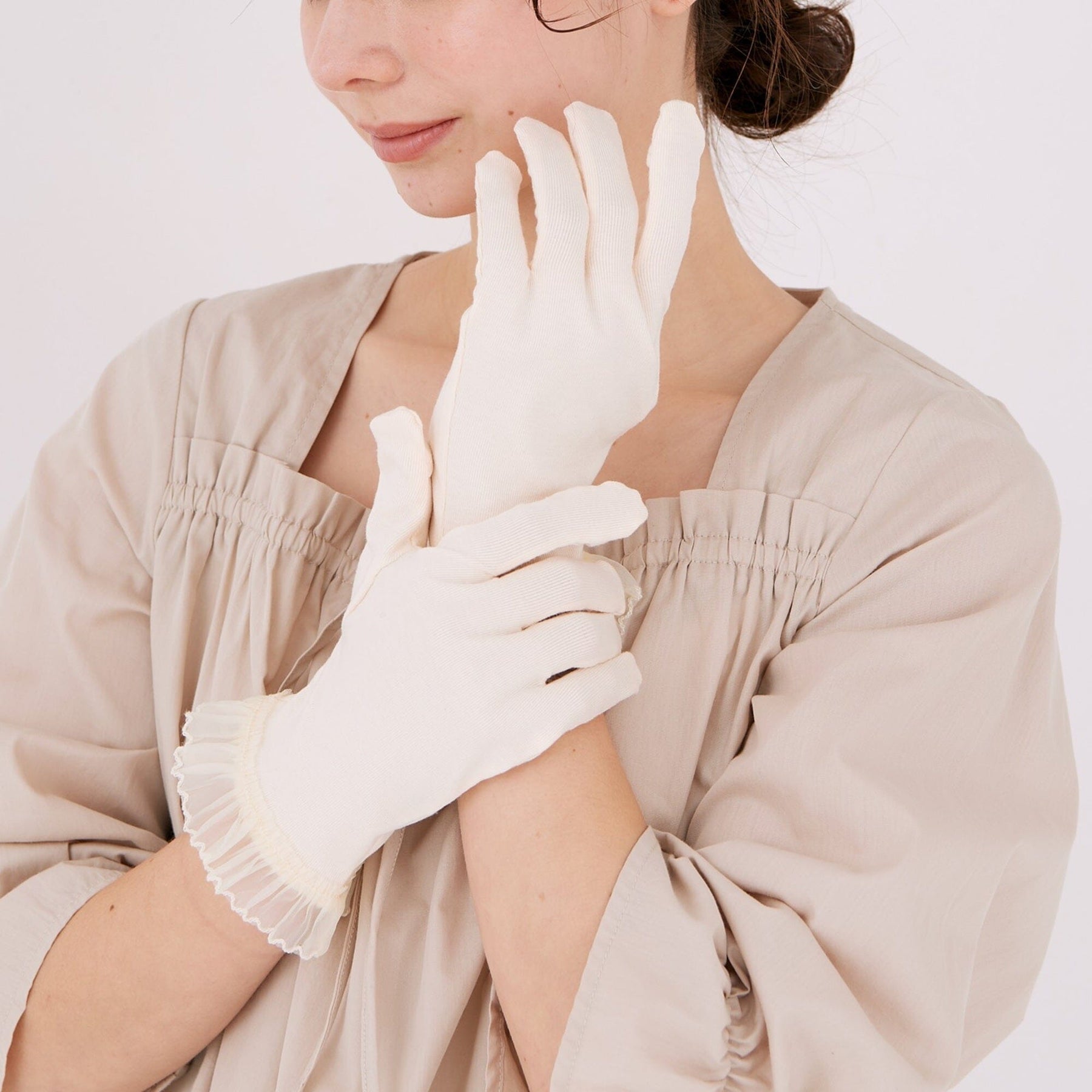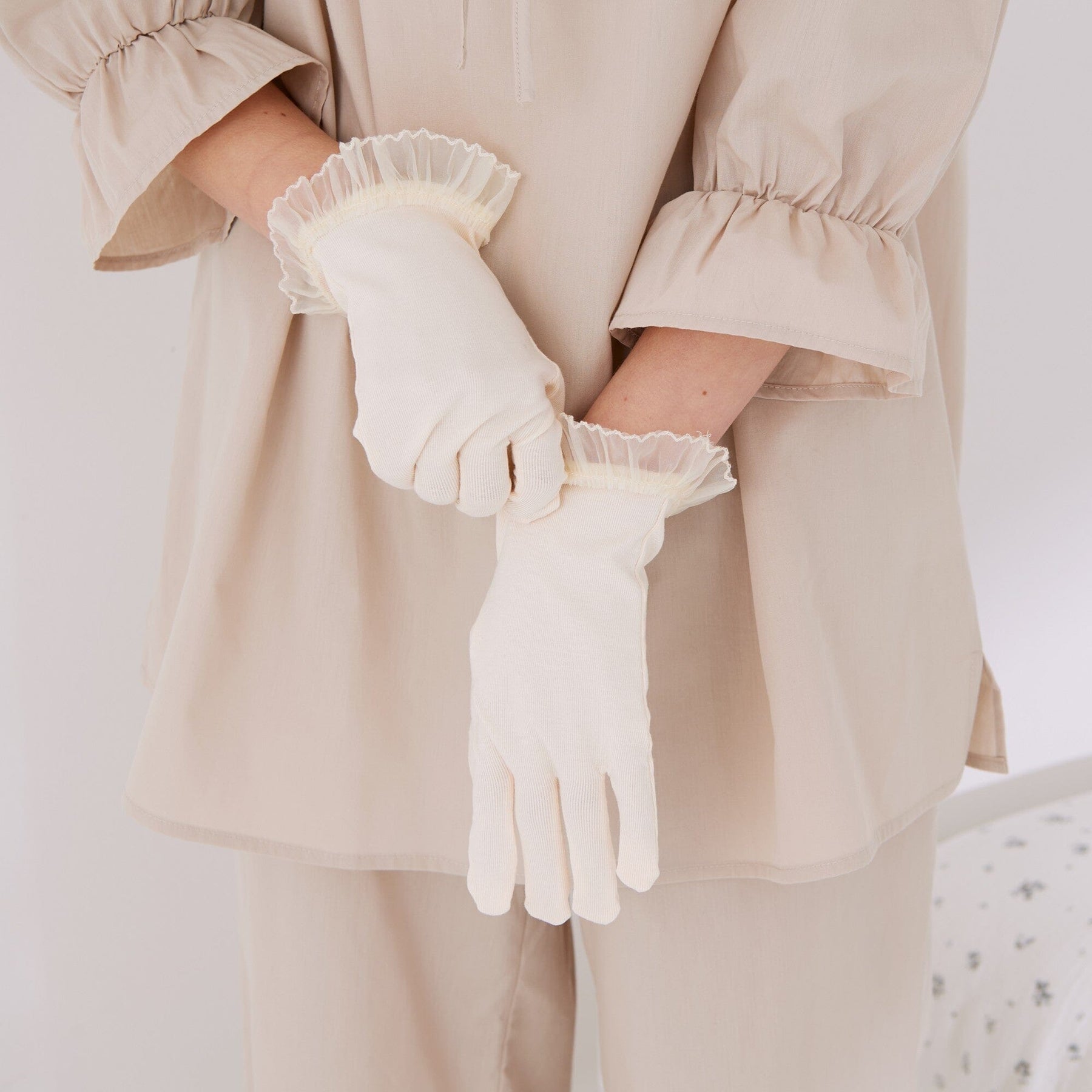 These night gloves are made from soft rayon material.The fabric has a high moisture retention rate, making them recommended for those with dry skin.