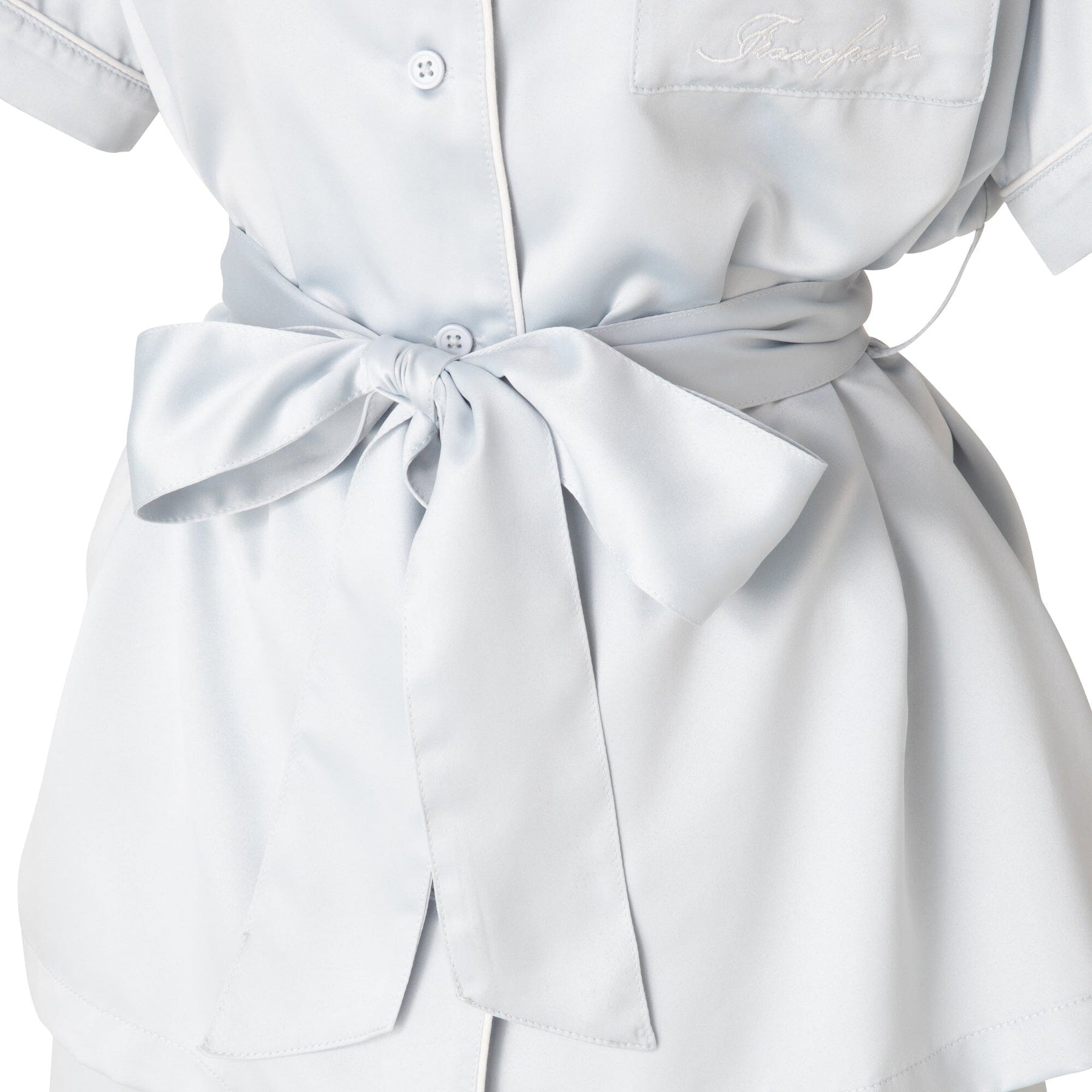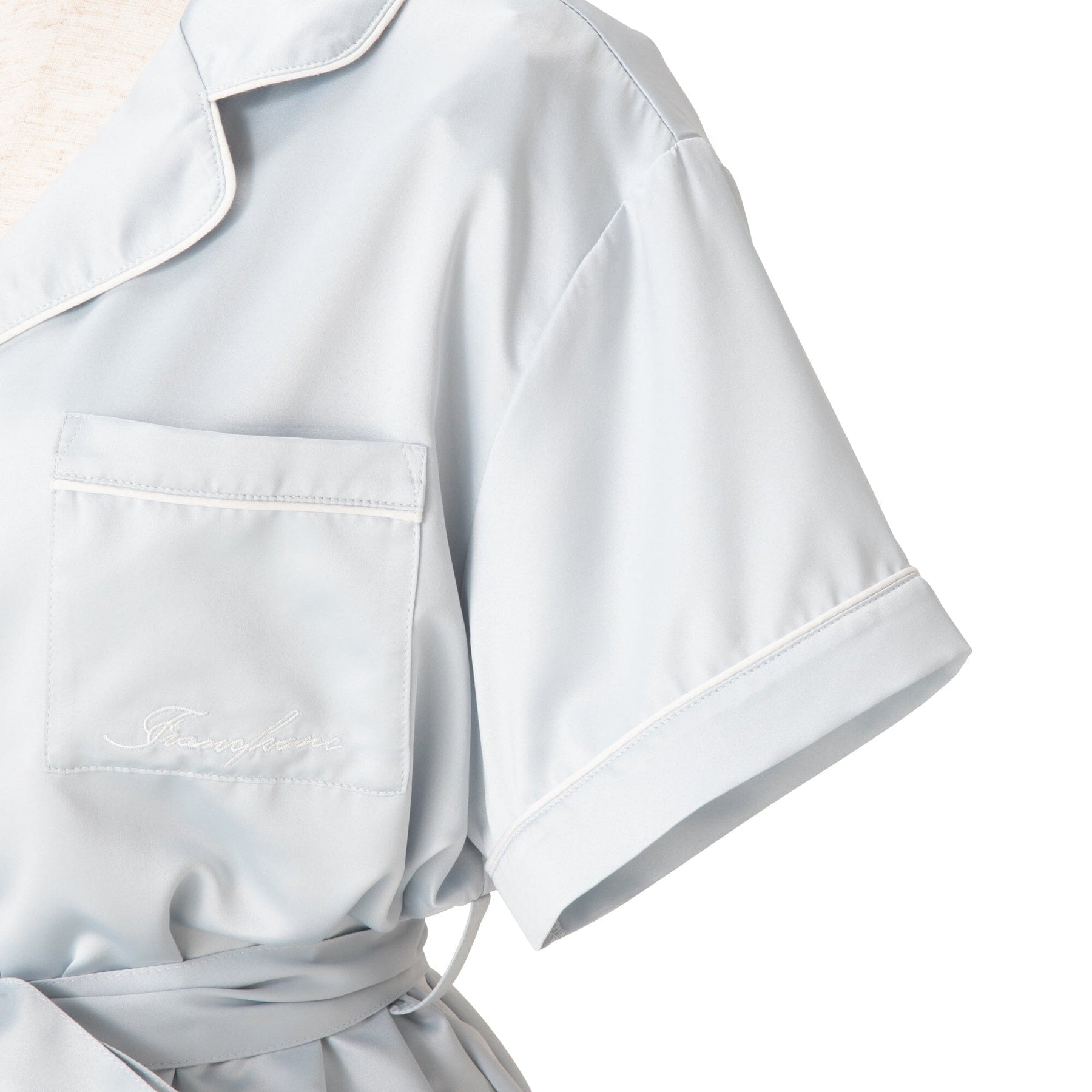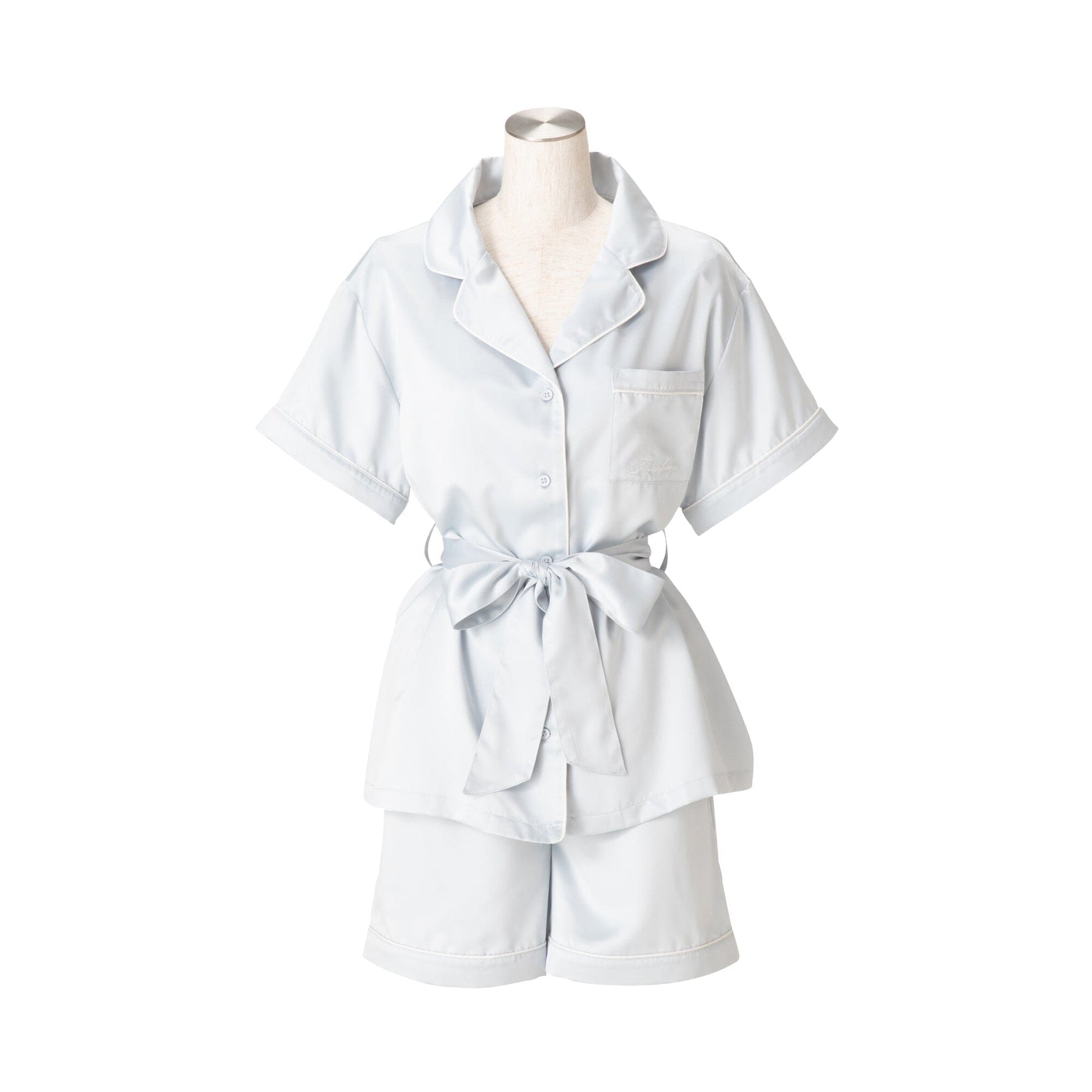 Hyaluronic Acid-Processed Short-Sleeve Shorts Pajamas With Embroidered Logo Light Blue
