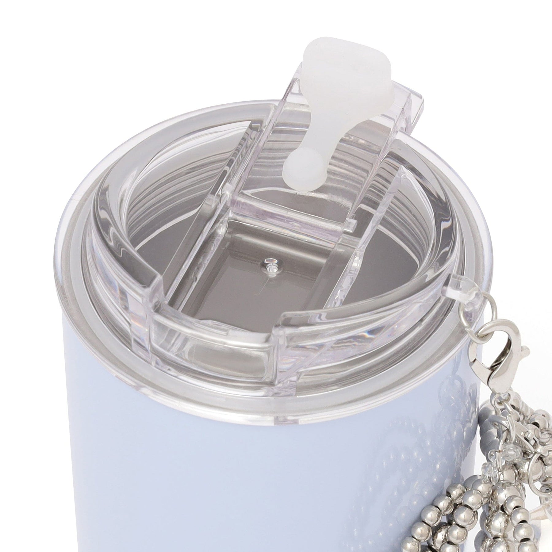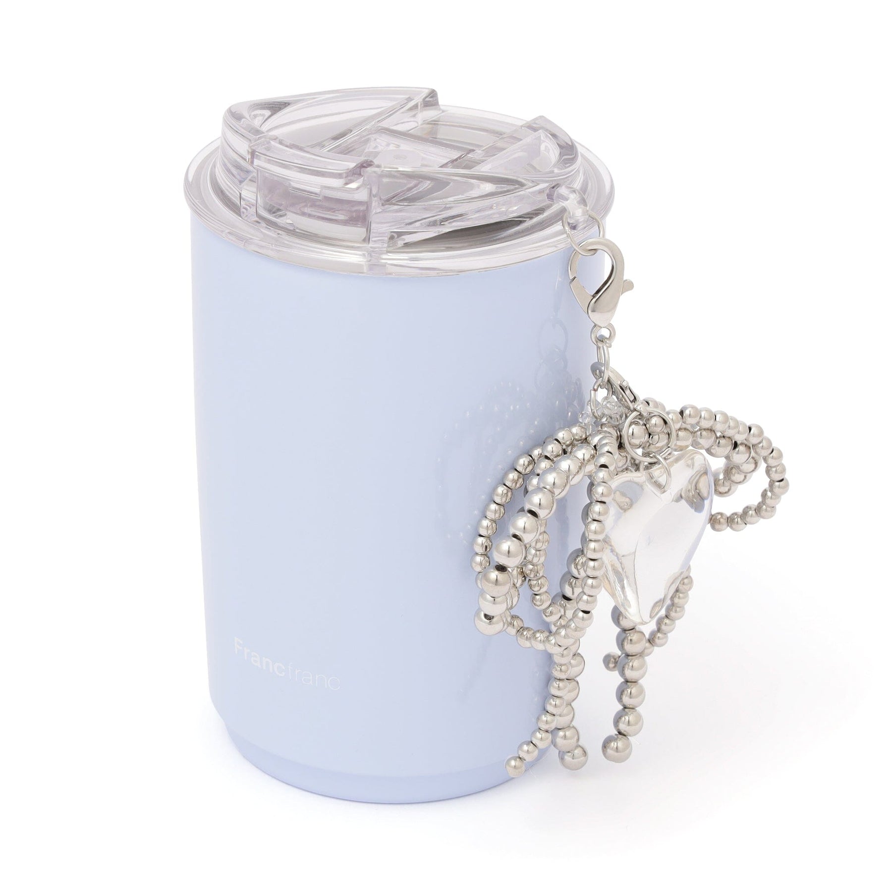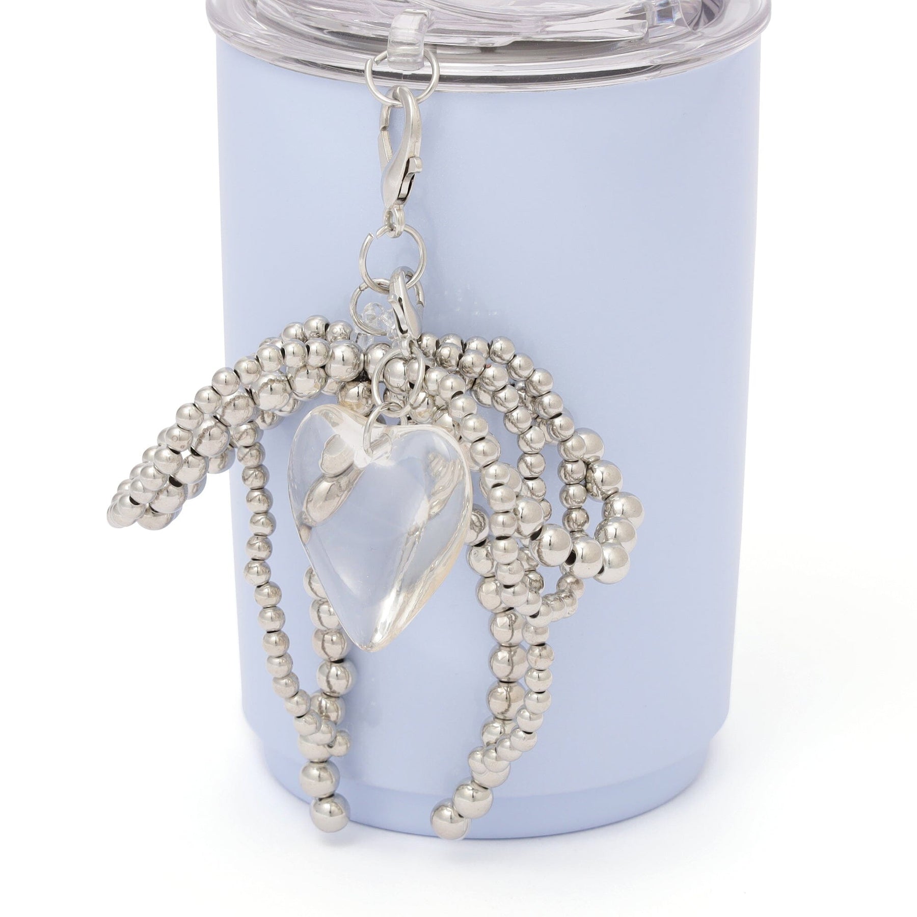 This stainless steel tumbler features a trendy pearl ribbon and heart charm.The charm sways with every sip, adding a touch of soothing fun.