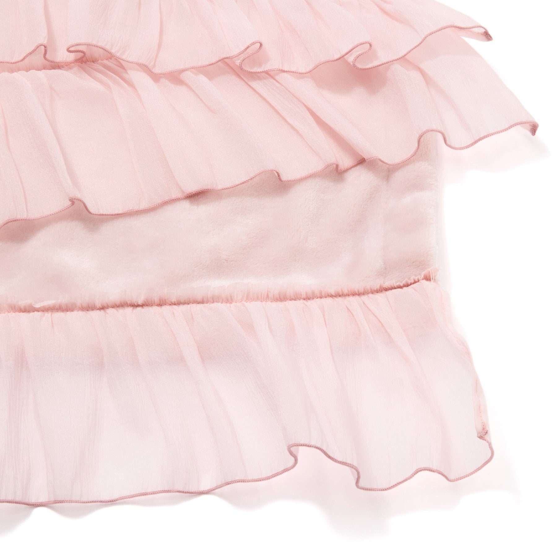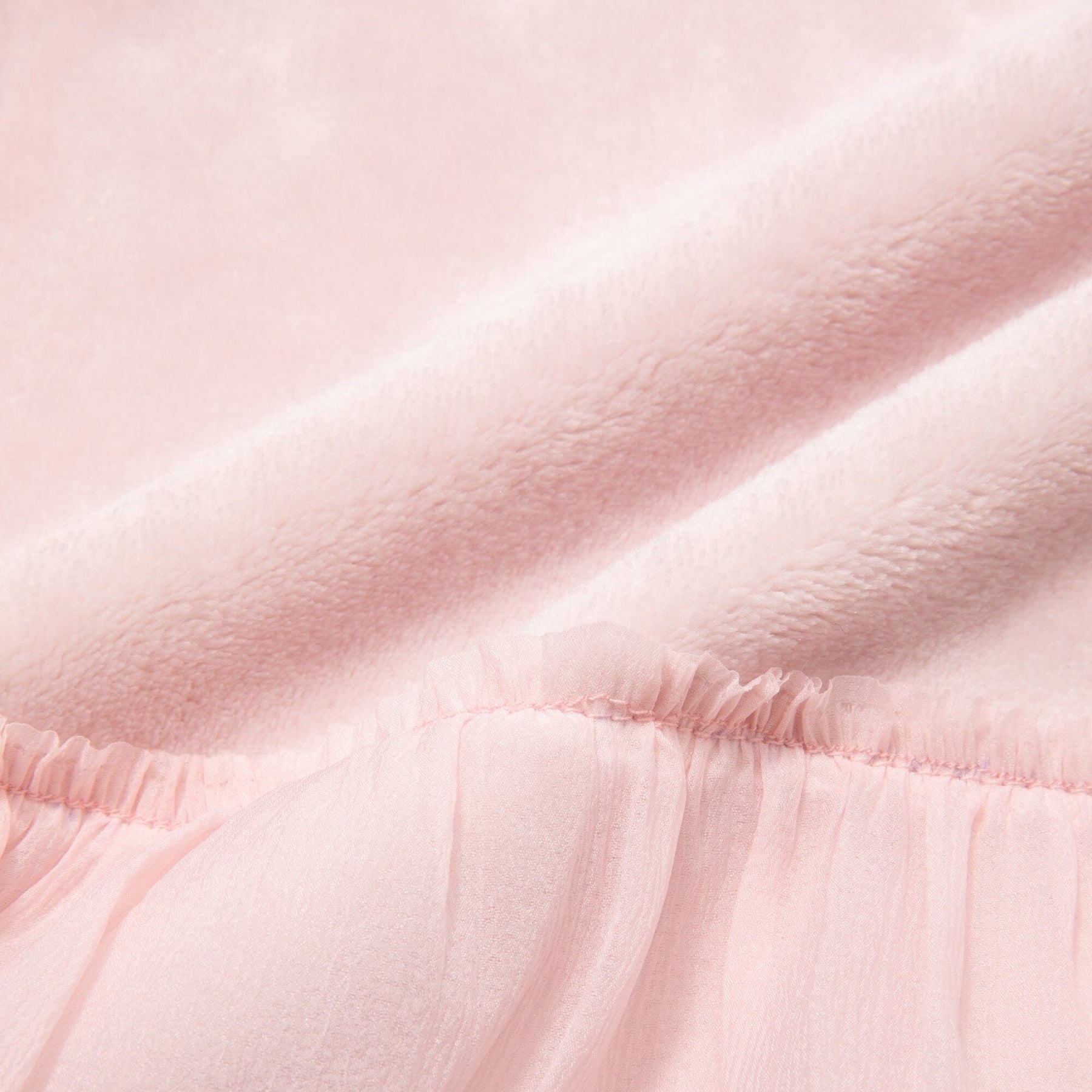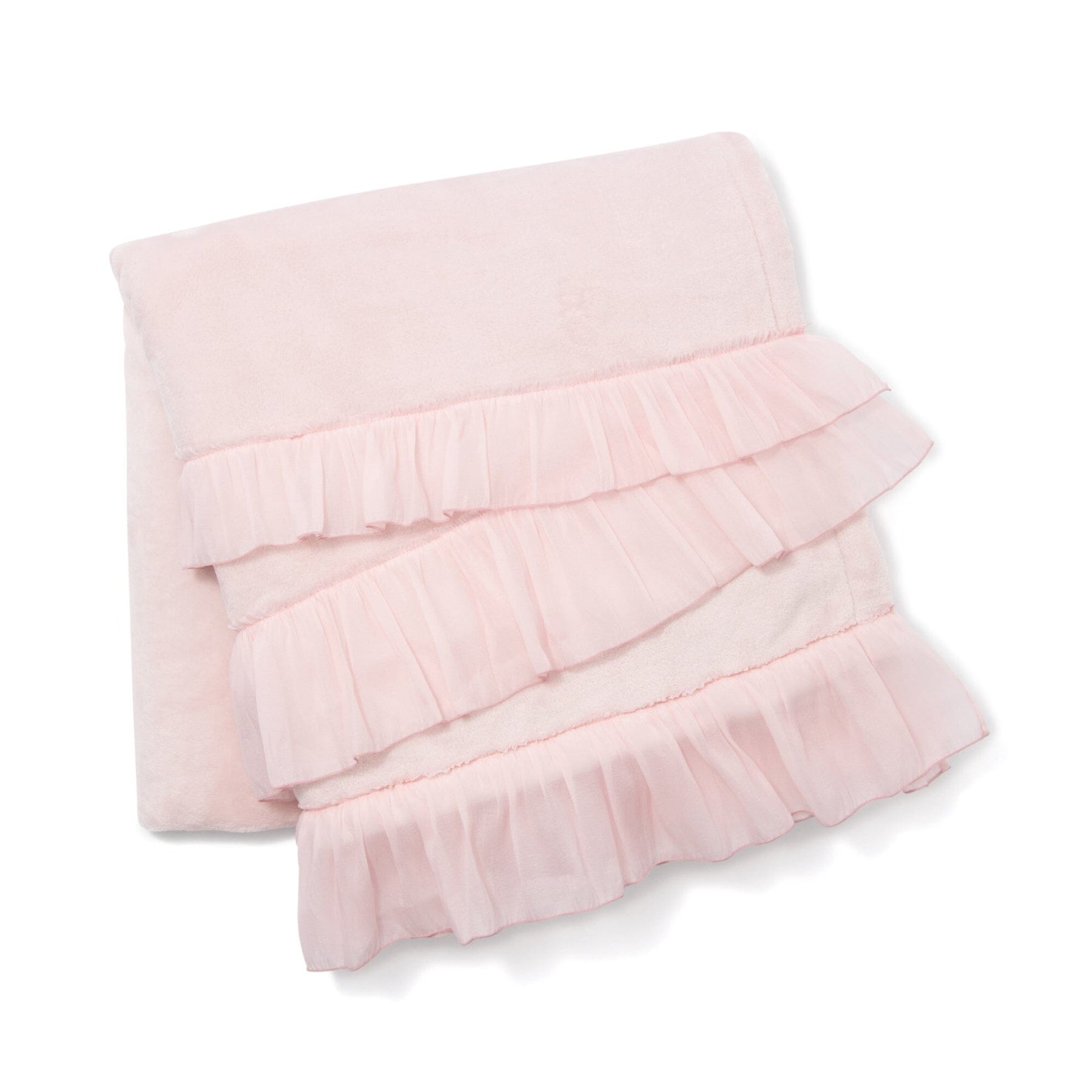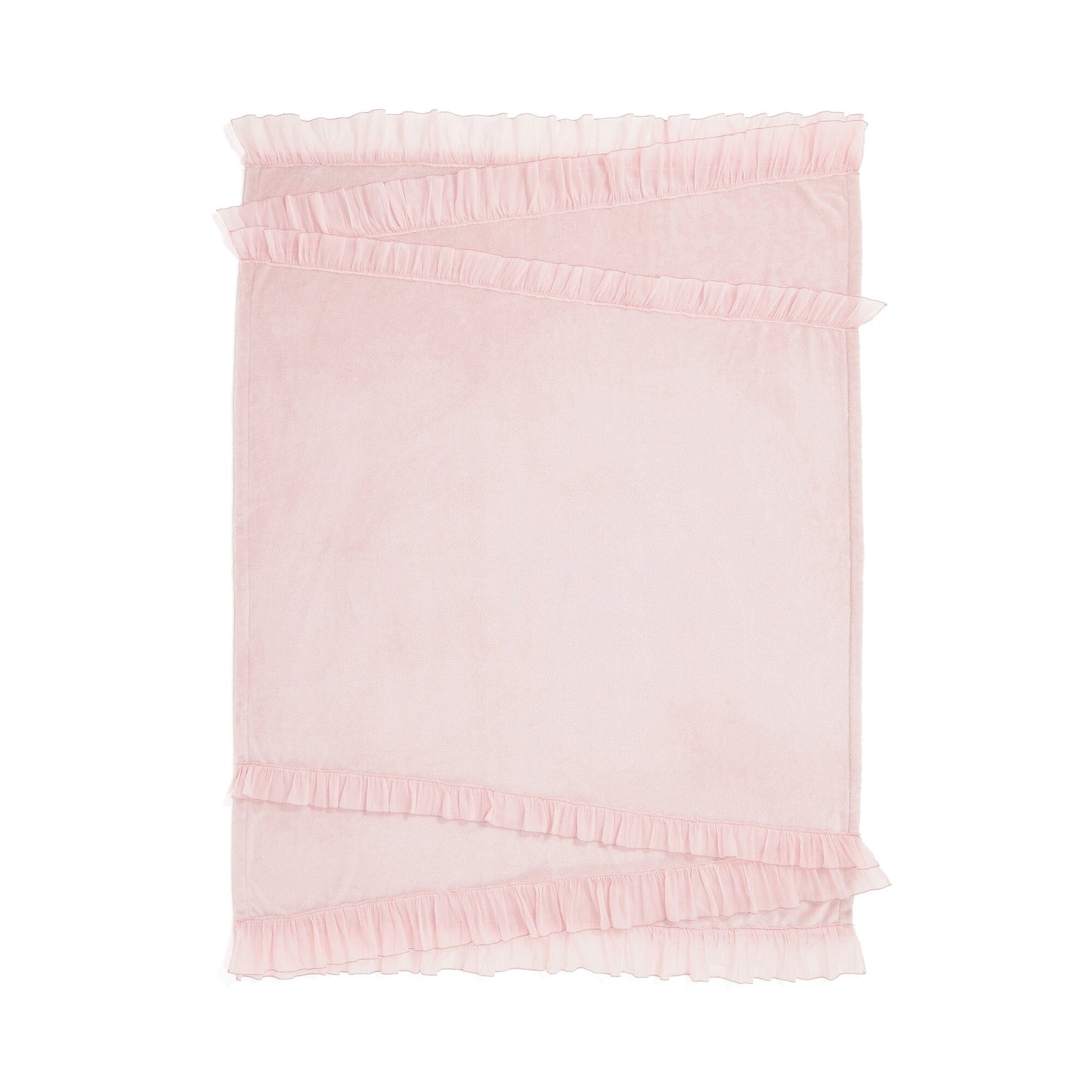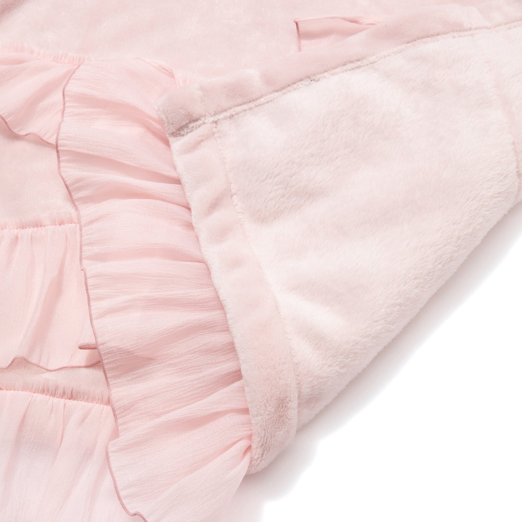 This throw (lap blanket) is made of smooth microfiber fabric with soft organza ruffles.The marshmallow-like texture is addictive once you touch it.